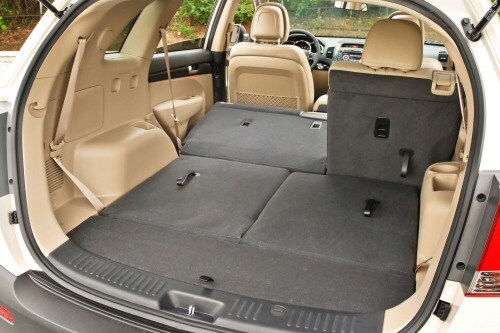 The front seats provide plenty of comfort for long trips and offer the type of commanding view of the road that crossover buyers want. The second-row seat accommodates two with ease and three in a pinch. It doesnt slide forward or aft without the optional third-row seat, making the standard Sorento less versatile than the RAV4. But the third-row seat does feature 50/50-split-folding seatbacks and enough room for adults, which is unique to a vehicle of its size. With the rear seats folded, the Sorento can carry up to 72.5 cubic feet of cargo, about as much as a RAV4 or CR-V.